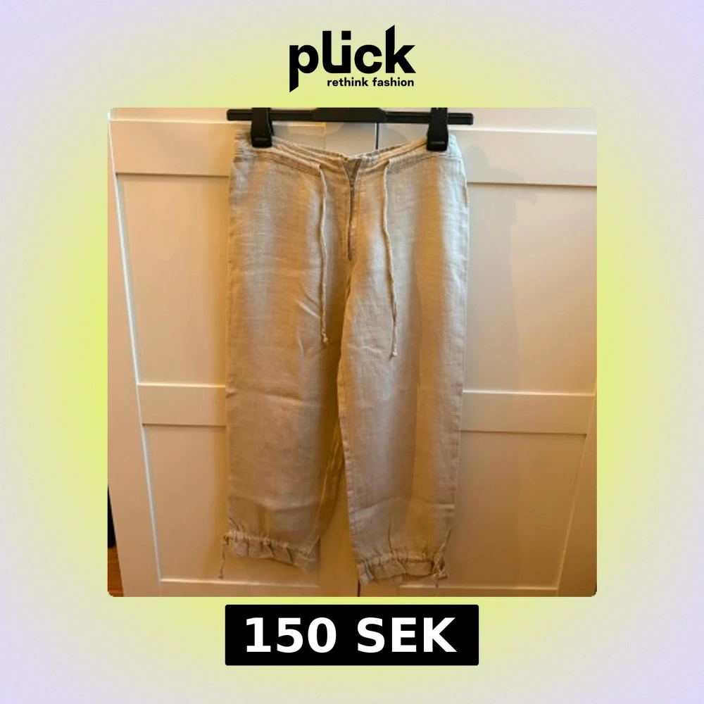 Säljer mina fina beigea linnebyxor från Bonn Jeans i storlek S💗mycket bra skick!!💓💓