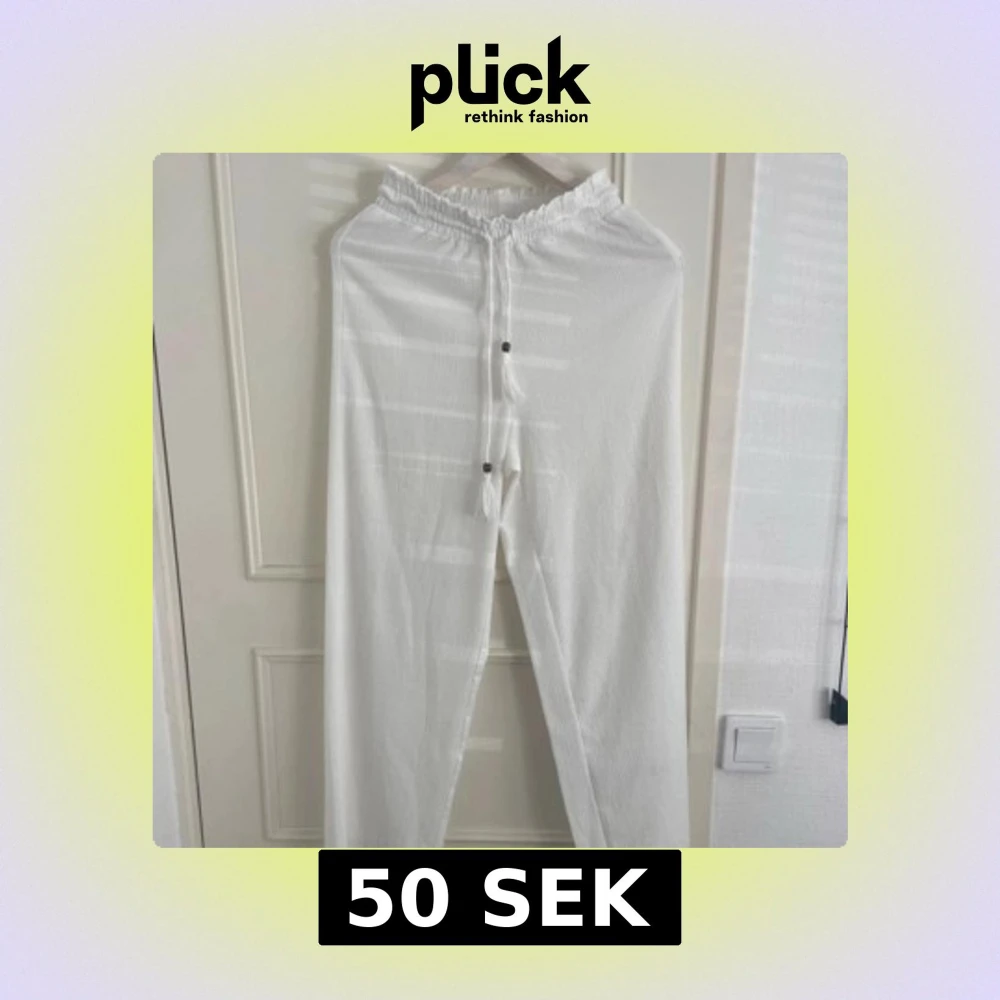 Snygga och luftiga vita linnebyxor med resår i midjan och snörning framtill med dekorativa tofsar. Perfekta för varma dagar och en chill stil. Raka ben och avslappnad passform.