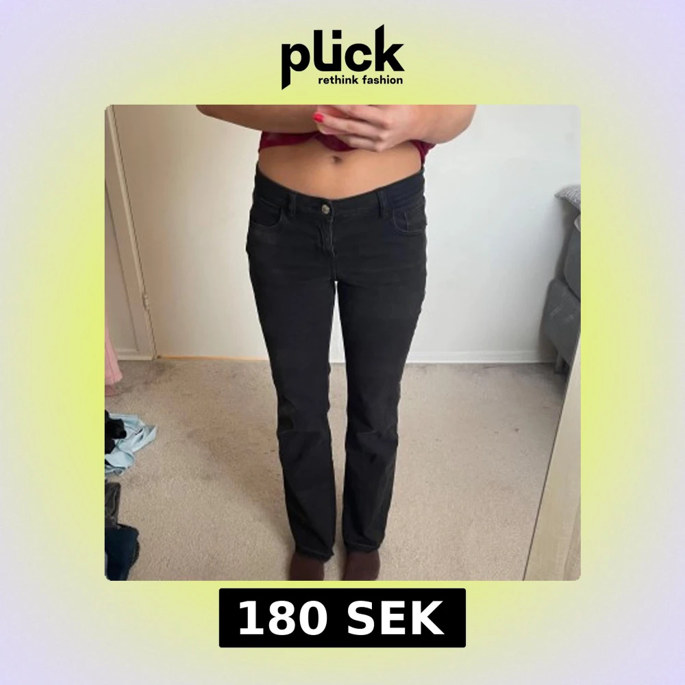Snygga svarta jeansbyxor med en klassisk design. De har en knapp och dragkedja framtill samt fickor både fram och bak. Byxorna har en rak passform som ger en stilren look.