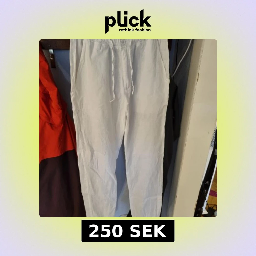 Fräscha vita linnebyxor från Akryl i storlek S. De har elastisk midja med snörning och raka ben, vilket ger en chill och avslappnad vibe. Perfekta för varma dagar och enkla att matcha med sneakers eller sandaler.