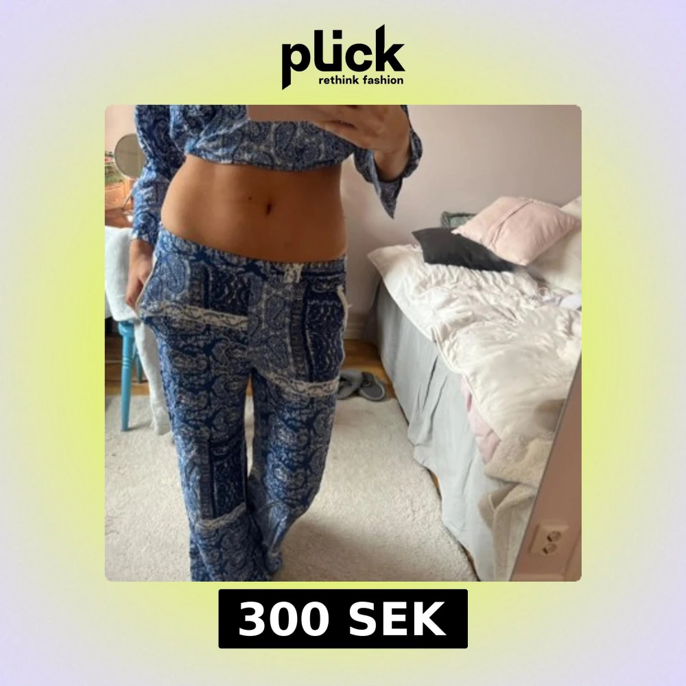 Blå mönstrat set, byxorna långa i benen. Köp setet tillsammans för 300kr!