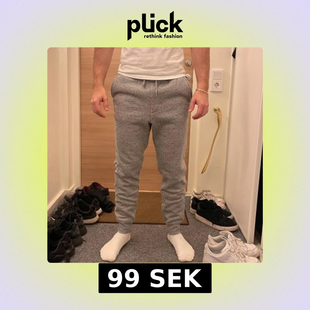 Säljer ett par grå mjukisbyxor med mjukt fleecefoder. Byxorna har snörning i midjan och är perfekta för kalla dagar. De har en normal passform och är superbekväma att ha på sig.