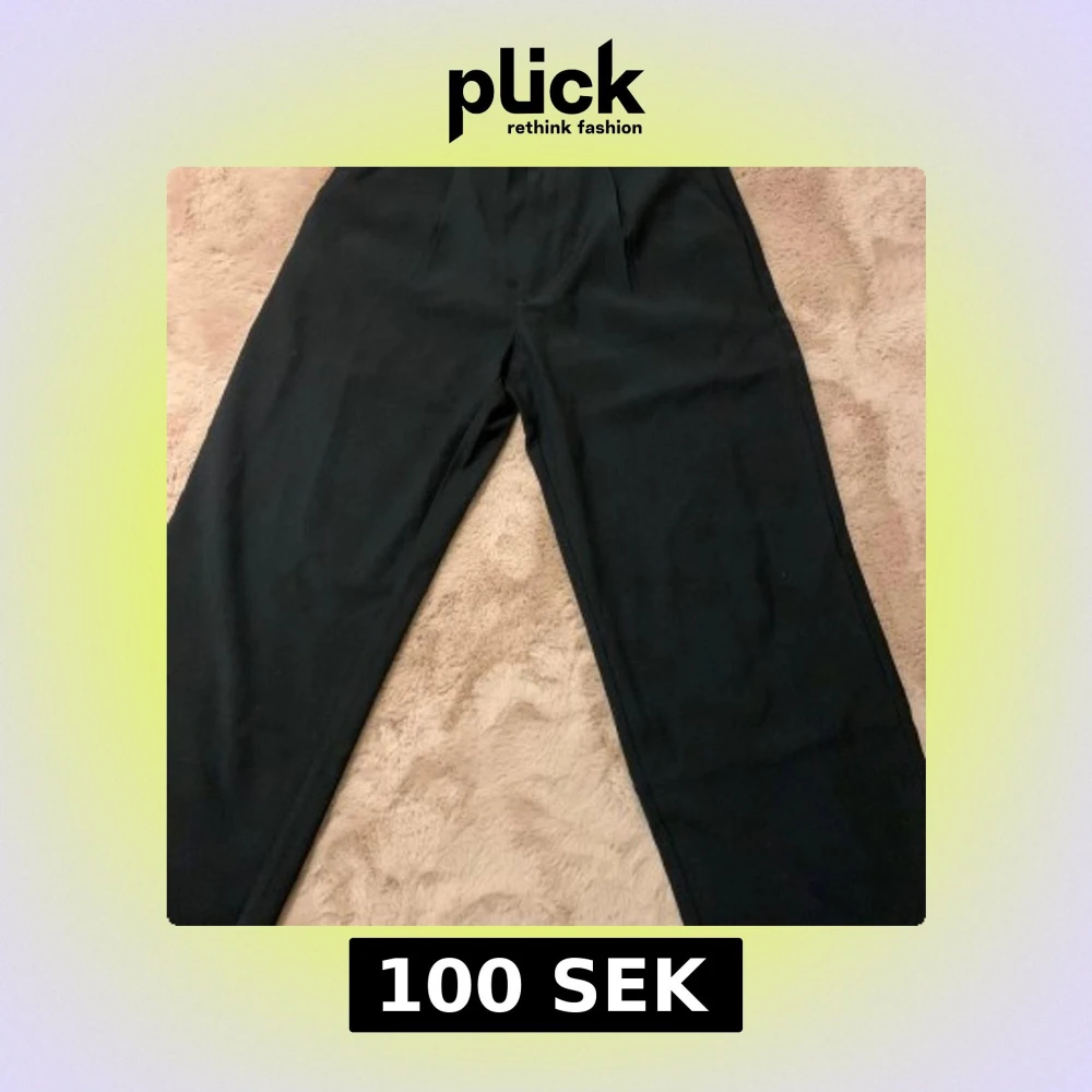 Endast använda ett få antal gånger och har inga tecken på användning. Svarta kostymbyxor från 157 med klassisk rak passform och pressveck framtill. Byxorna har fickor i sidorna och en diskret bakficka. Midjan är midwaist men kan staylas olika beroende på person till person. (Kan användas som lowwaist och midwaist)