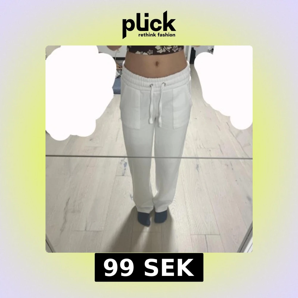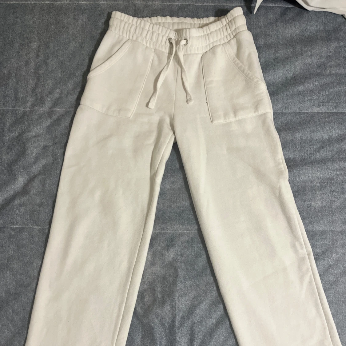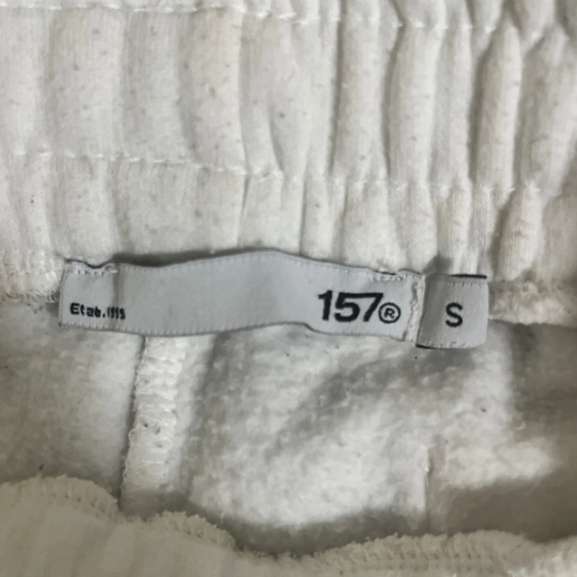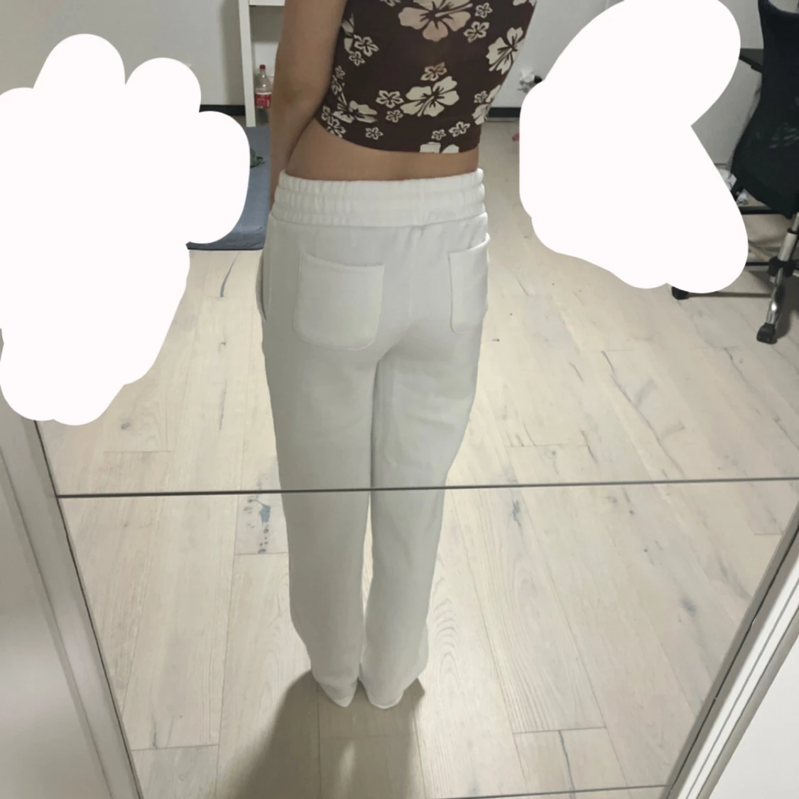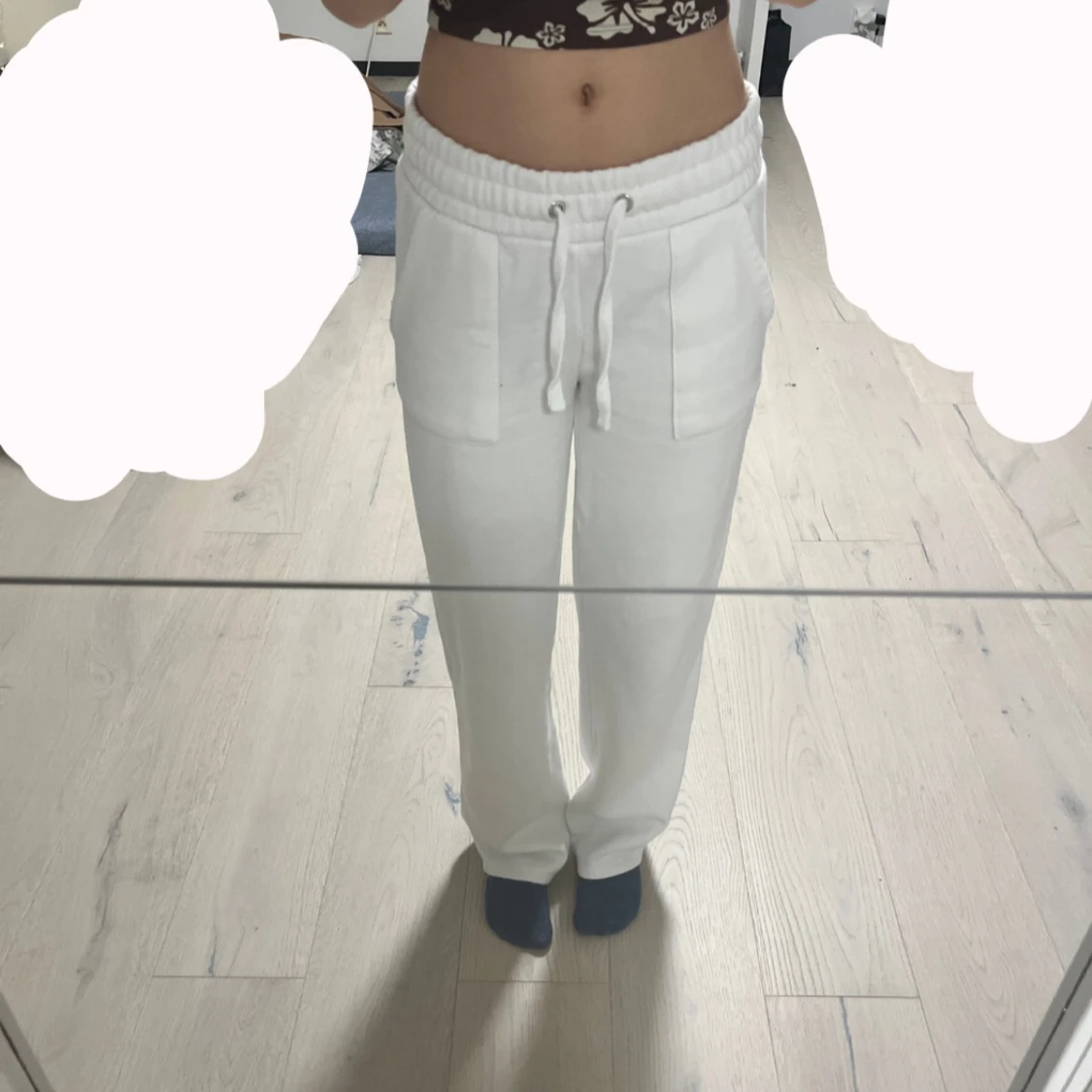 Säljer ett par vita mjukisbyxor från 157 i storlek S. Byxorna har en bekväm elastisk midja med dragsko och praktiska fickor framtill. Perfekta för en avslappnad stil.