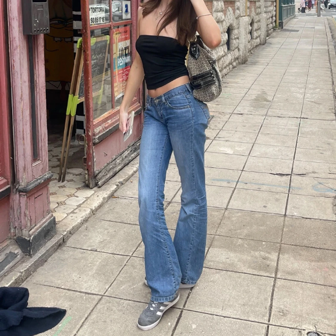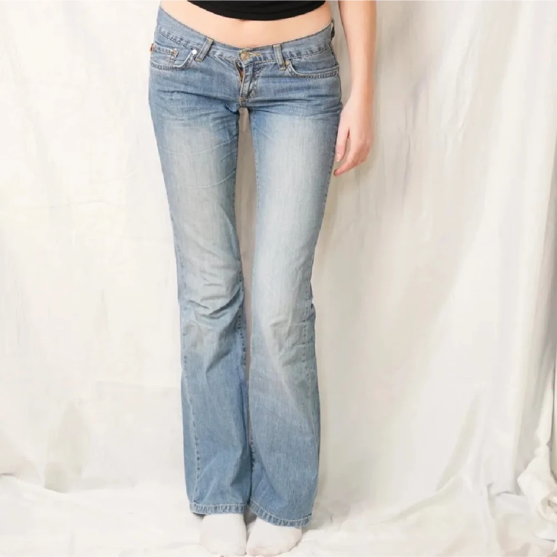 Säljer dessa superfina lågmidjade jeansen då de tyvvär var för små för mig. Gylfen är sönder men de går att laga själv eller eventuellt gå till en skräddare. (Lånade bilder, hon på bilden är 175cm och bär oftast S/XS.