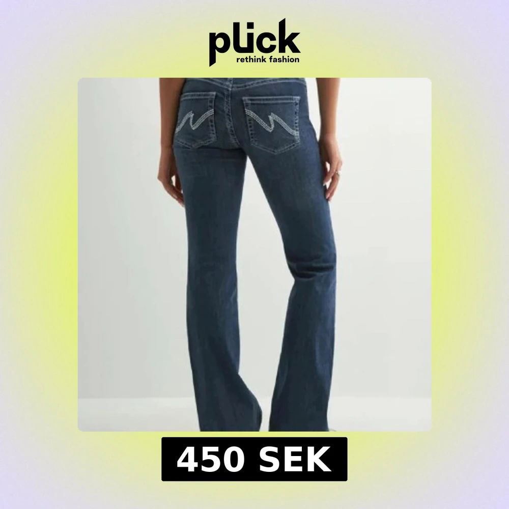 Snygga blå jeans med bootcut passform och hög midja. Jeansen har dubbla knappar framtill och coola broderade detaljer på bakfickorna. Tillverkade i klassiskt denimtyg som ger en tidlös look.