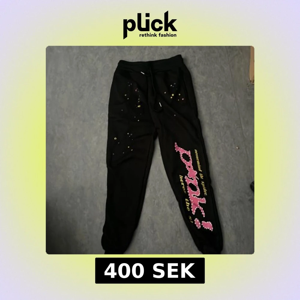 Svarta mjukisbyxor med färgglatt tryck på ena benet och små stjärnmönster. Byxorna har snörning i midjan och muddar vid bensluten. Perfekta för en chill och avslappnad stil.
