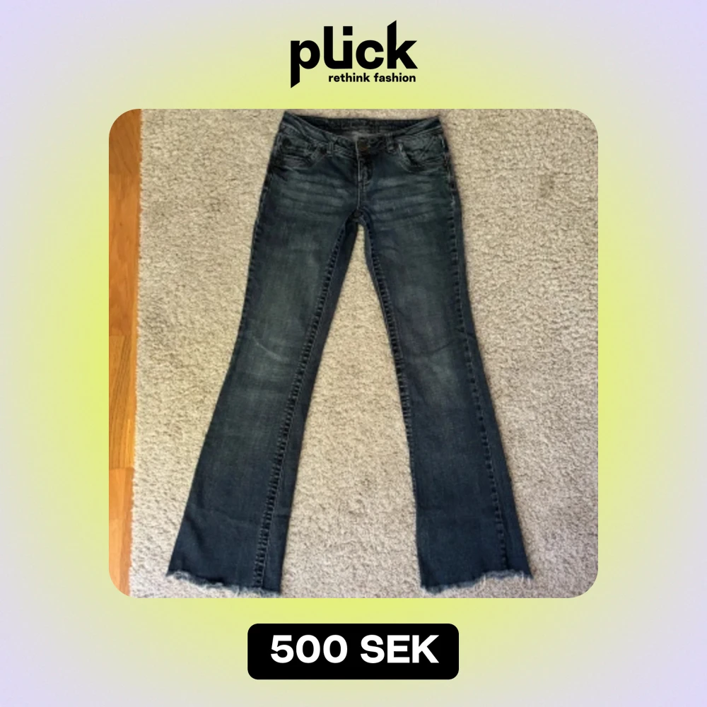 Super fina lågmidjade jeans med coola detaljer. Midjemått tvärs över: 37cm. Innerbens mått: 79cm. Dom är avklippta där nere. Priset kan diskuteras vid snabb affär⭐️