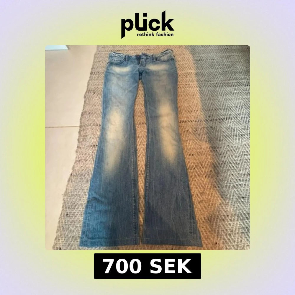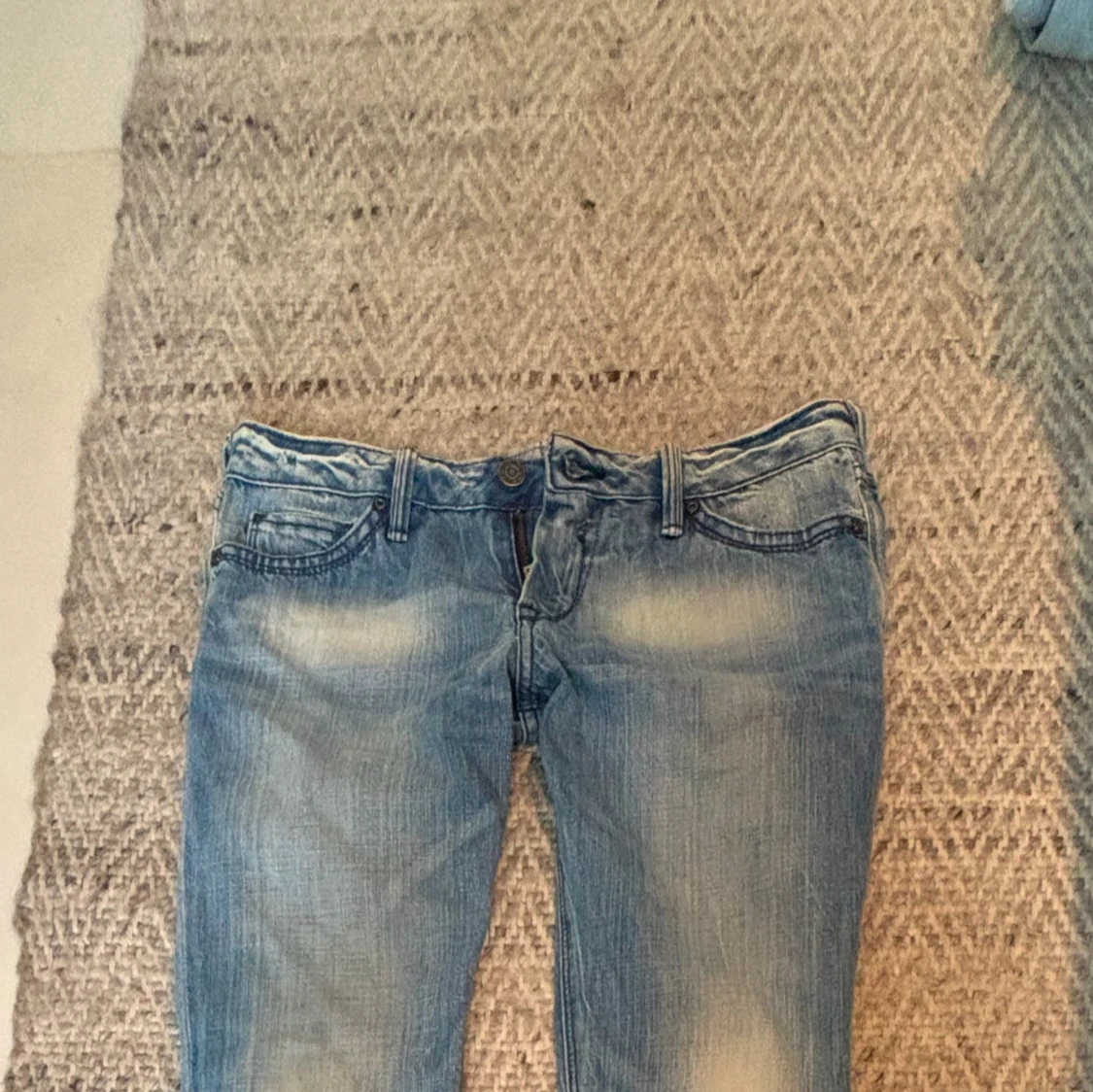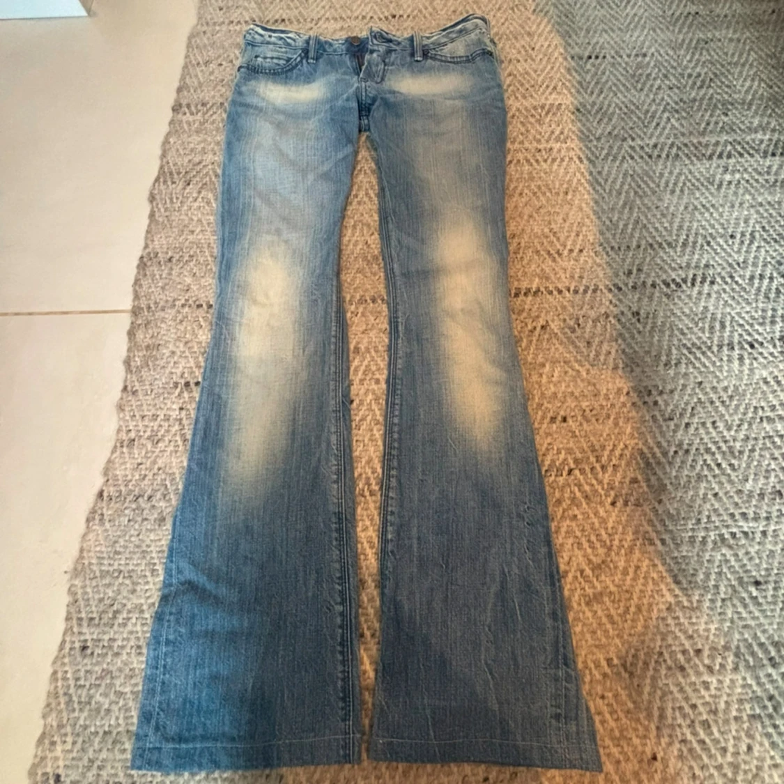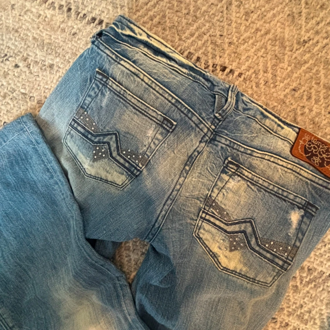 Snygga lågmidjade ljusblå bootcut jeans med coola detaljer på bakfickorna. Jeansen har klassisk femficksdesign, låg midja och dekorativa nitar på bakfickorna. ❤️❤️