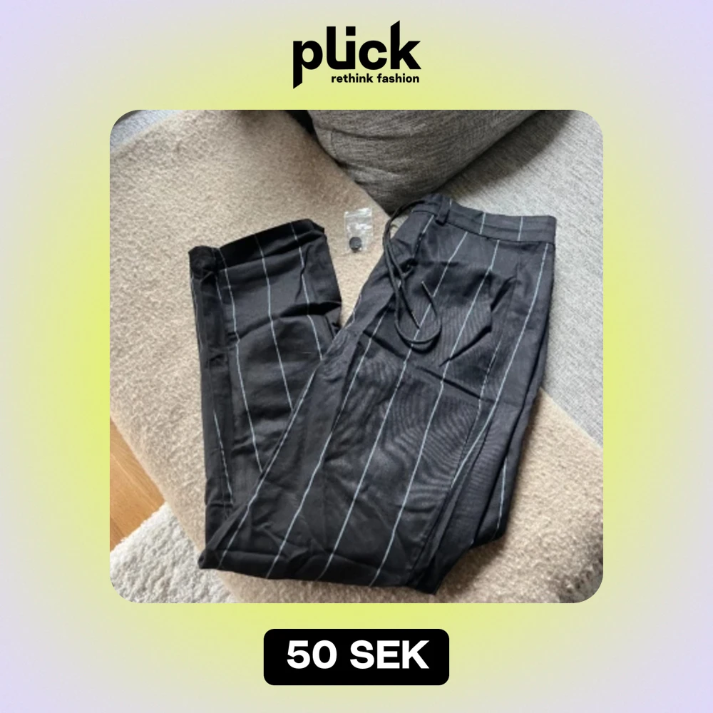 Svarta byxor med vita ränder från Shein. Knapp tillkommer. Oanvända. Storlek S
