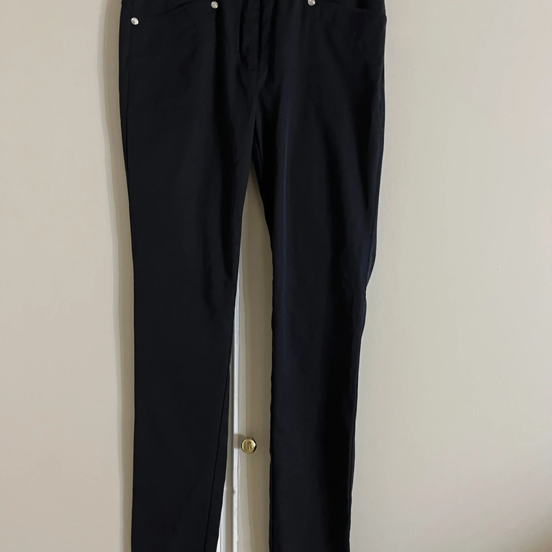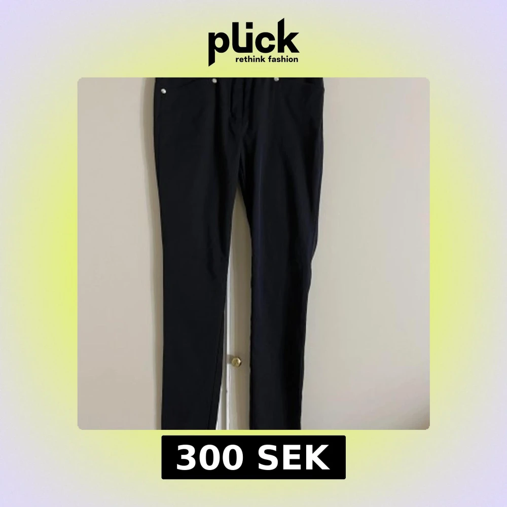 Svarta byxor från Daily Sports med klassisk rak passform och diskreta silverfärgade nitar vid fickorna. Byxorna är tillverkade i ett stretchigt material som ger en bekväm känsla och snygg siluett. Perfekta för en sportig och stilren look.