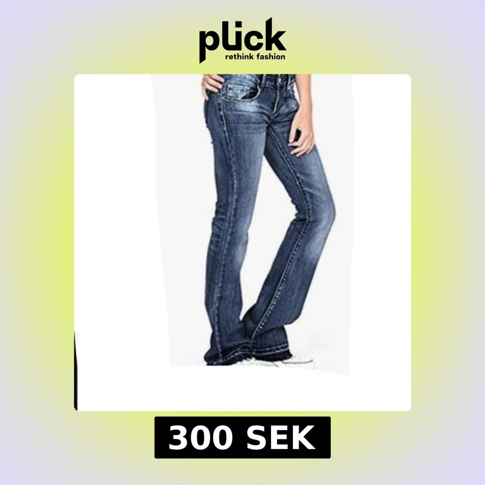 Snygga blå bootcut jeans med låg midja. Jeansen har en lätt tvättad look. Jätte fina på och jätte sköna.Säljer för att jag inte anfört och de är små.