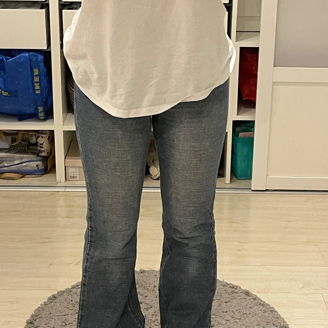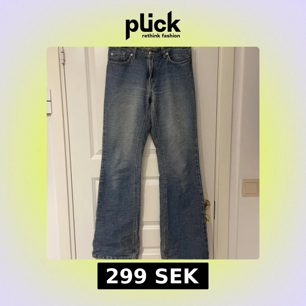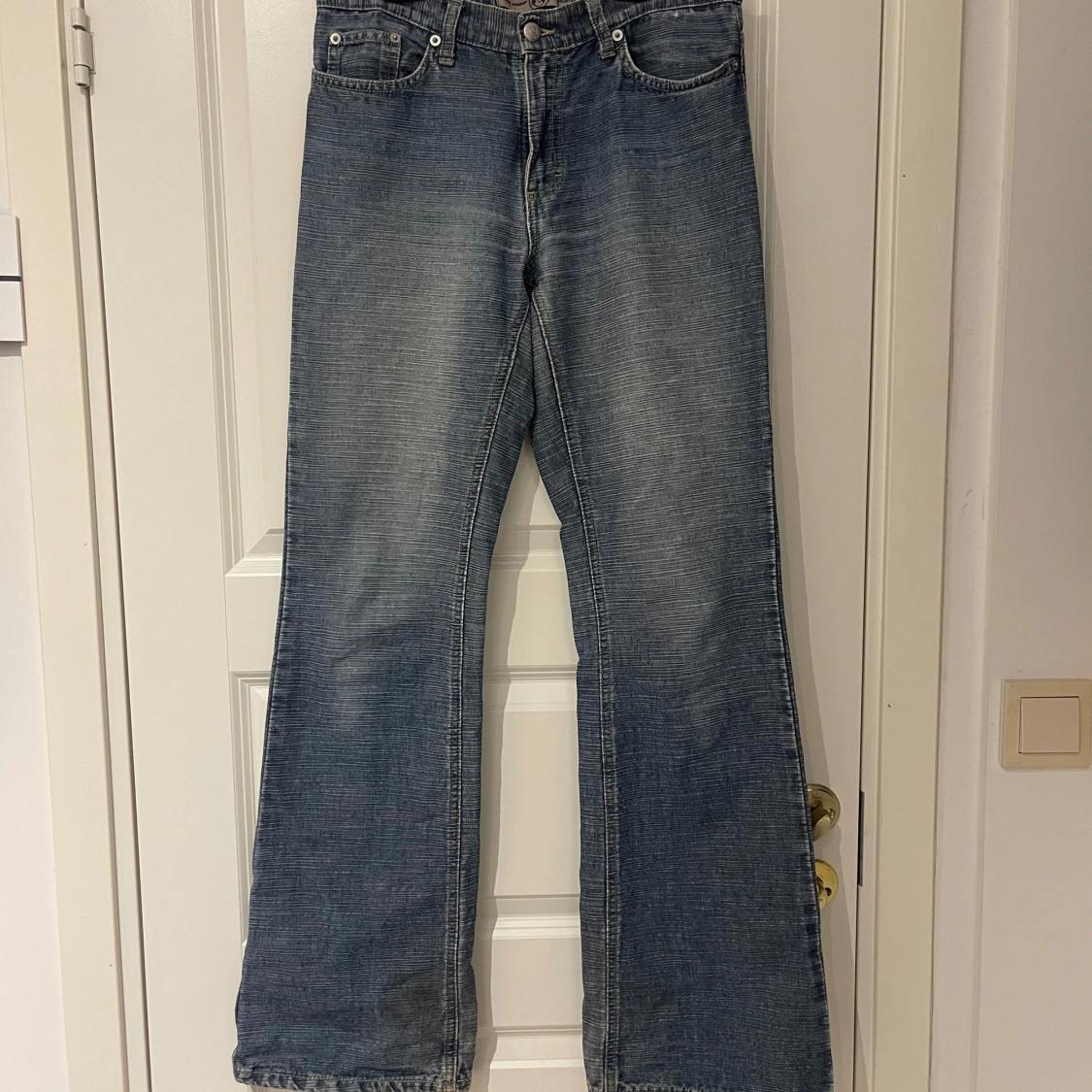 Säljer ett par klassiska blå bootcut jeans med normal passform. Inga fickor i bak.