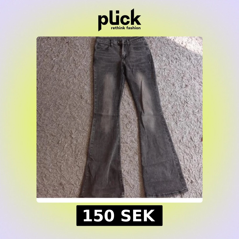 Snygga grå jeans med bootcut passform och klassisk femficksdesign. Jeansen har en mörkgrå tvätt med ljusare partier för en cool, avslappnad vibe. Tillverkade i jeansmaterial med dragkedja och knapp framtill. (Lite sönder trampade längst ner)☺️