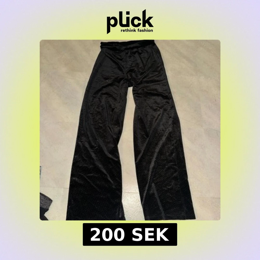 Snygga svarta byxor i mjukt sammetstyg med en loose passform. Perfekta för en stilren look med en touch av lyx. Byxorna har en elastisk midja för extra komfort. Passar s/m.