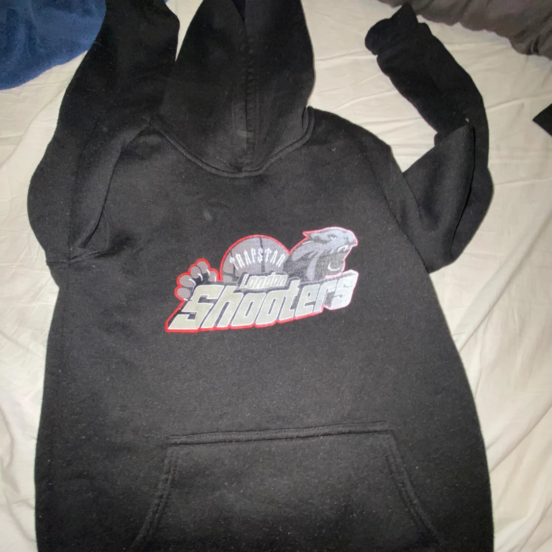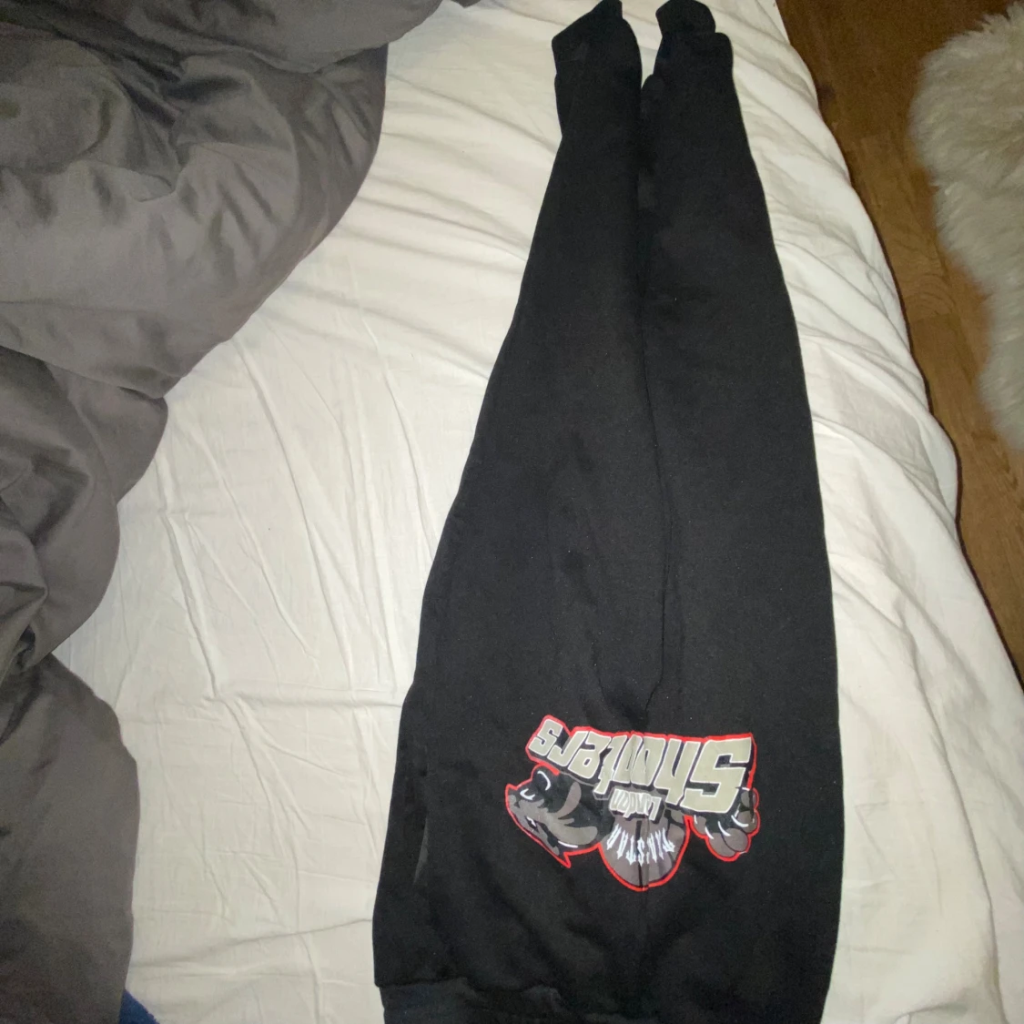 Svarta mjukisbyxor från Trapstar med stort tryck av London Shooters och pantermotiv på ena benet. Byxorna har resår i midjan och vid benslut, samt en avslappnad passform. Perfekta för en streetwear-look.
