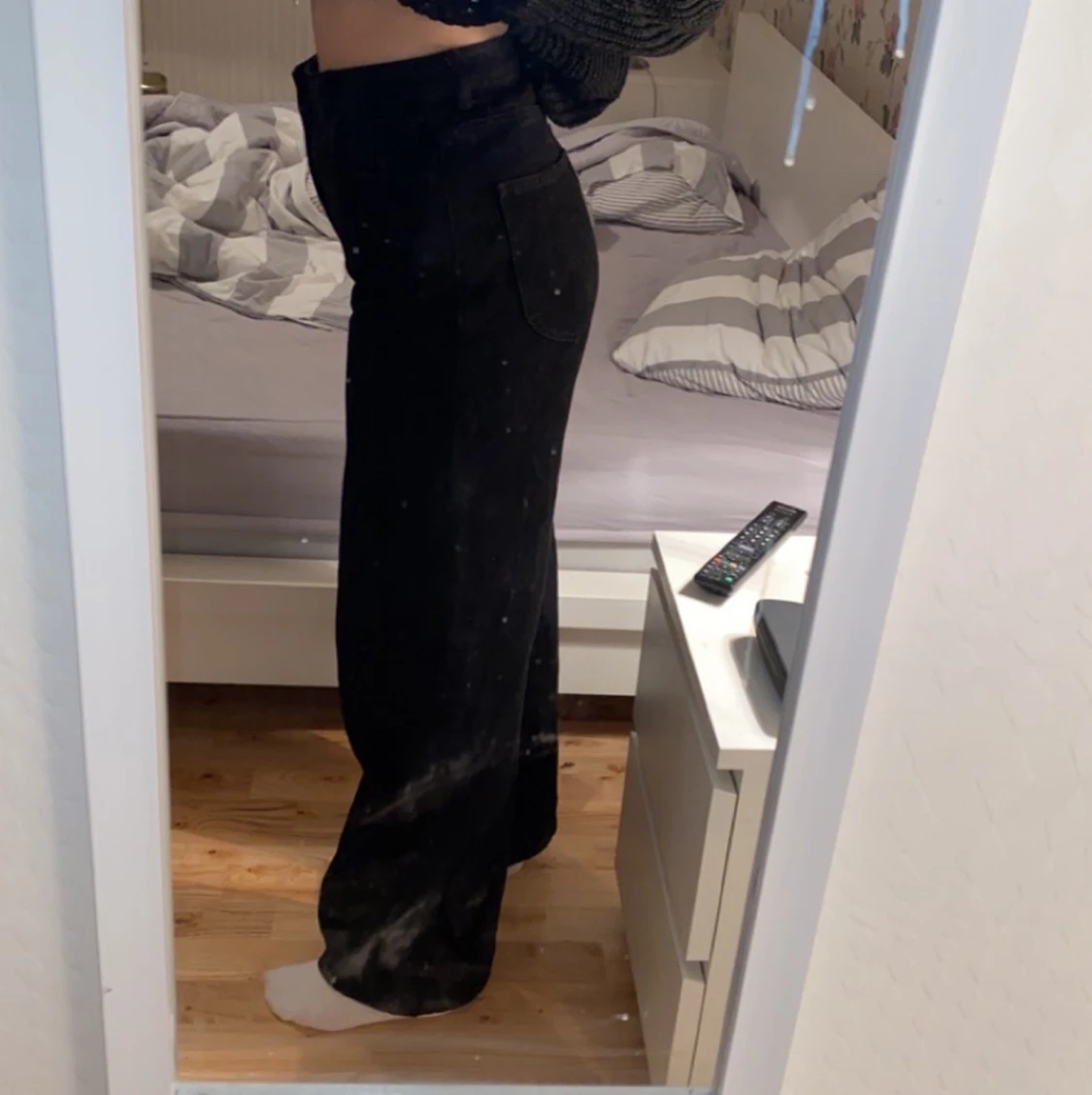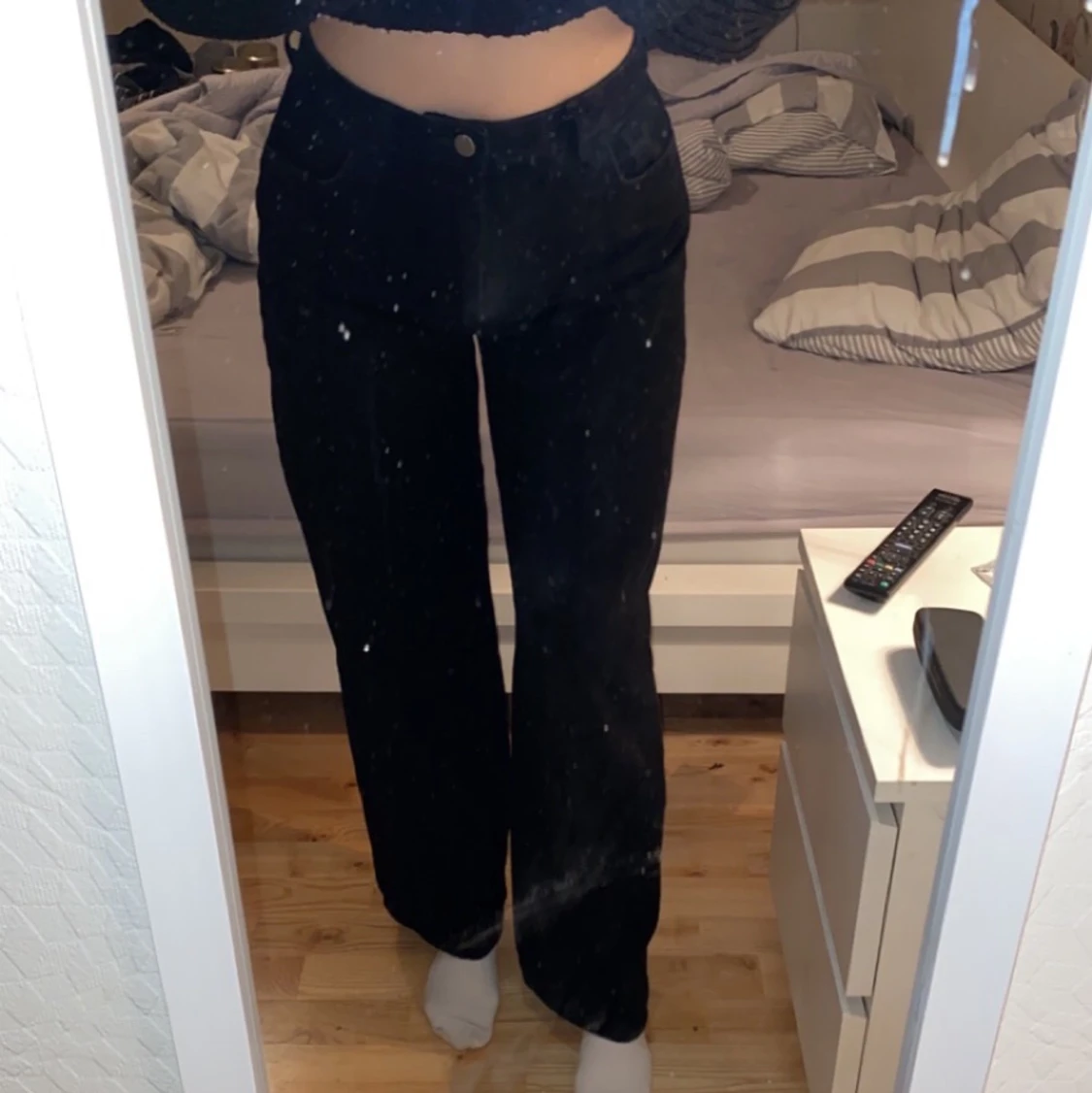 Säljer ett par svarta vida byxor storlek 36. I nyskick. Det är spegeln som är smutsig och finns inga fläckar på byxorna alls! Skickar gärna fler bilder💕