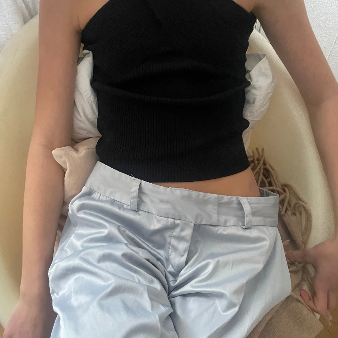 Jättefina lågmidjade ljusblå satinbyxor 🌟🌟