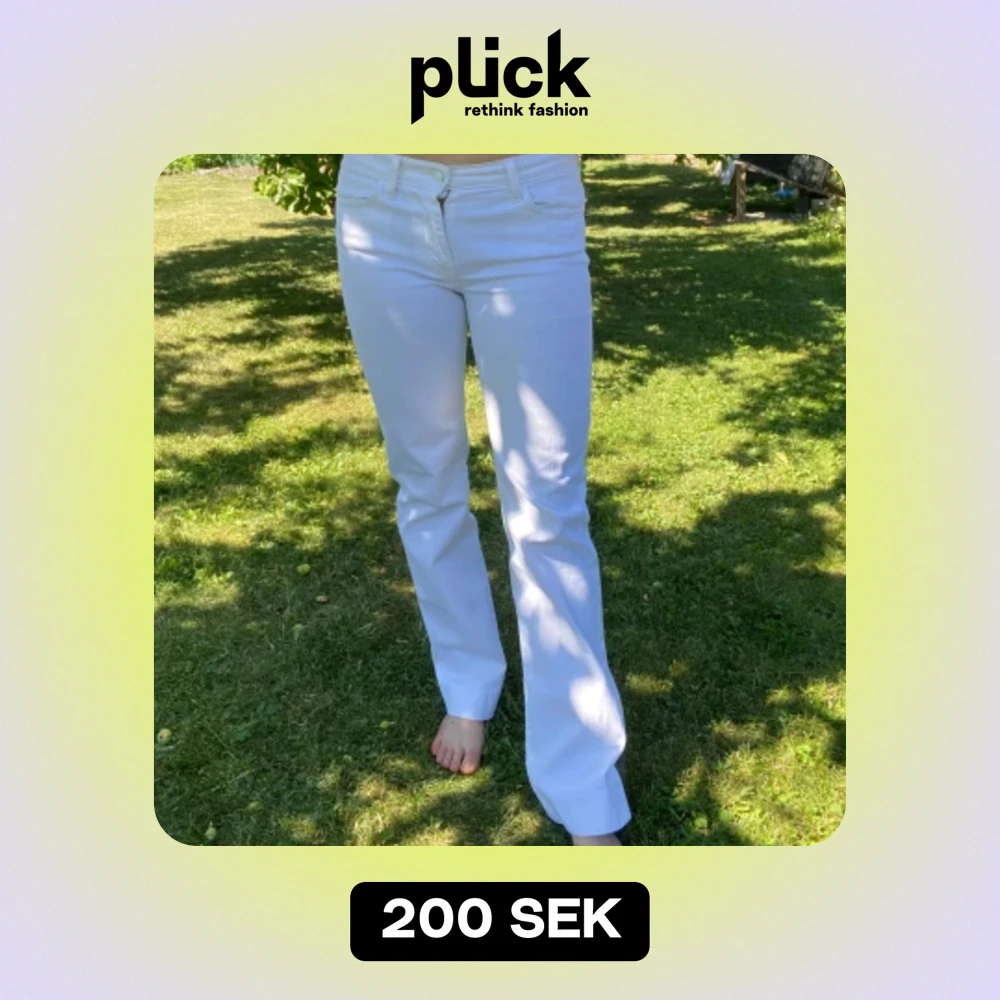 Interesse koll bootcut jeans från G.Rise - Intressekoll på mina snygga vita bootcut jeans från G.Rise med broderad logga i rosa på fickan. De har låg midja och dekorativa knappar på bakfickorna. Perfekta för en stilren look.