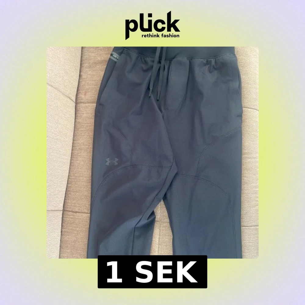 Snygga svarta träningsbyxor från Under Armour med elastisk midja och snörning. Perfekta för träning med en bekväm passform och stilren design. Byxorna har en diskret logga på benet. lägg ett pris själv