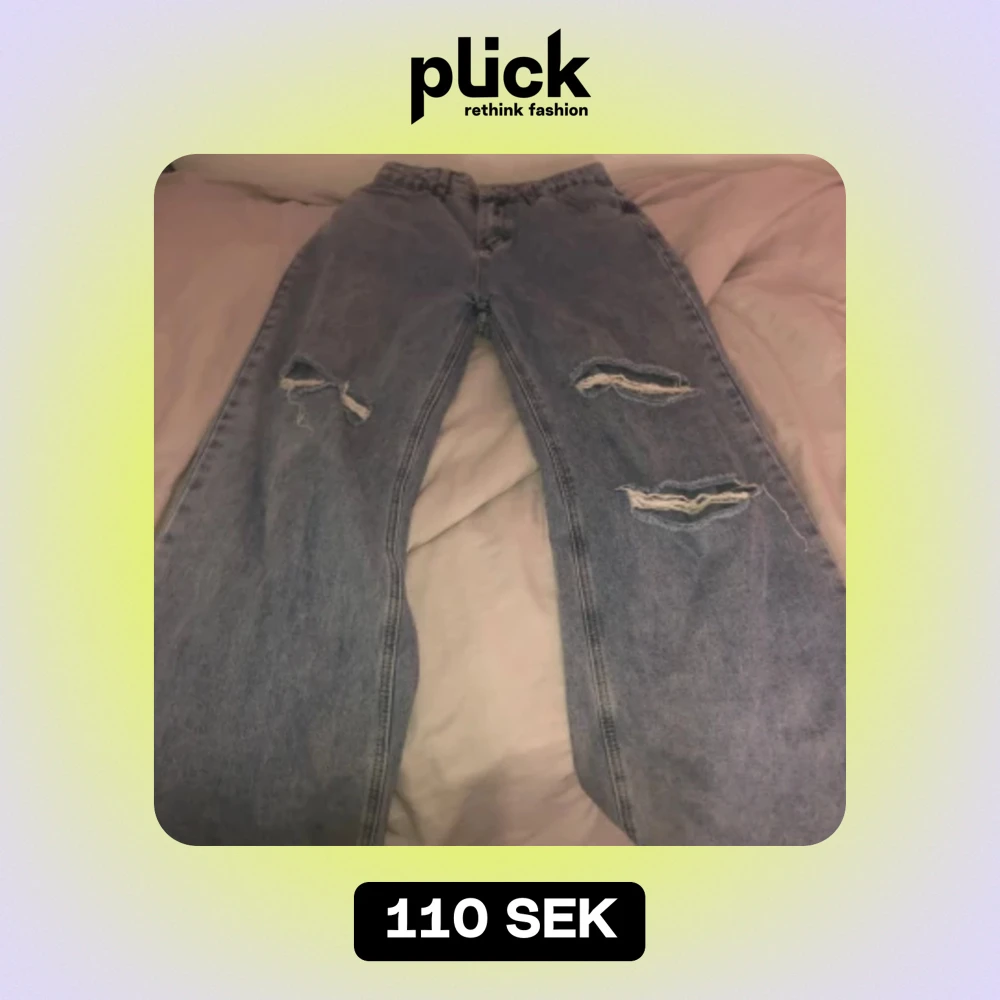 Ripped jeans med utsvĂ€ngda ben och har fickor fram och bak đ