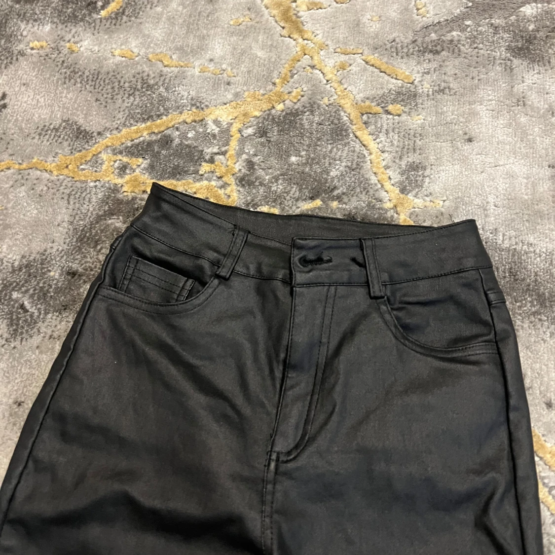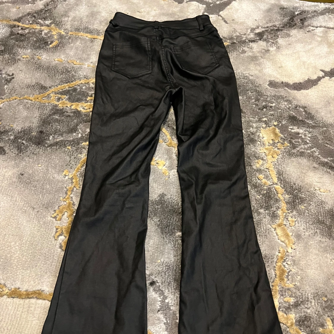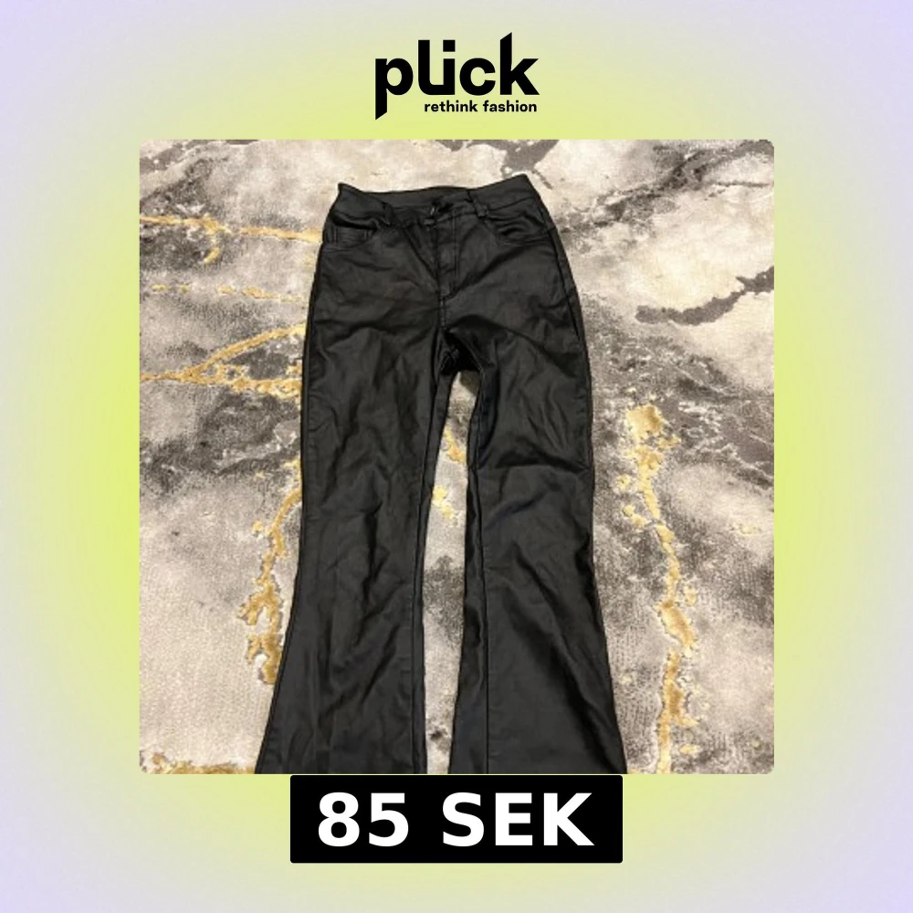 Snygga svarta jeans med bootcut och hög midja. Klassisk femficksmodell med bälteshällor och dragkedja fram. Materialet är jeans med en lätt glansig finish som ger en cool vibe. Perfekta för dig som gillar en tidlös men trendig look.