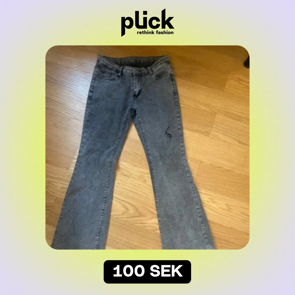 Ett par gråa lågmidjade bootcut jeans som nästintill aldrig är använda då det är för långa på mig som är 164 cm. Finns tyvärr ingen lapp vart de är ifrån men de är i mycket bra skick. Storlek S