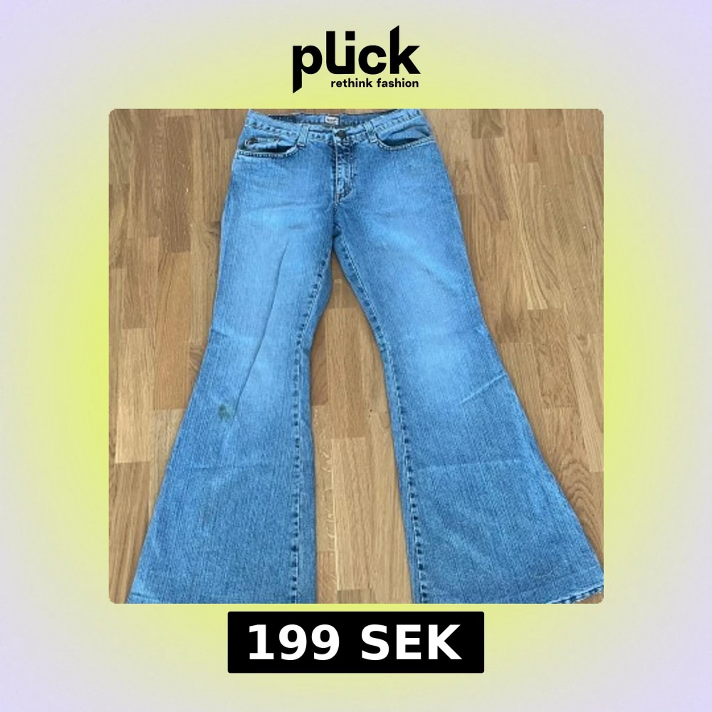 Säljer ett par ljusblå jeans från Zu Elements med klassisk femficksdesign och tydlig bootcut-passform. Jeansen har normal midja och är tillverkade i jeansmaterial med snygg tvätt och slitningar. Perfekta för dig som gillar retrovibbar och breda ben.