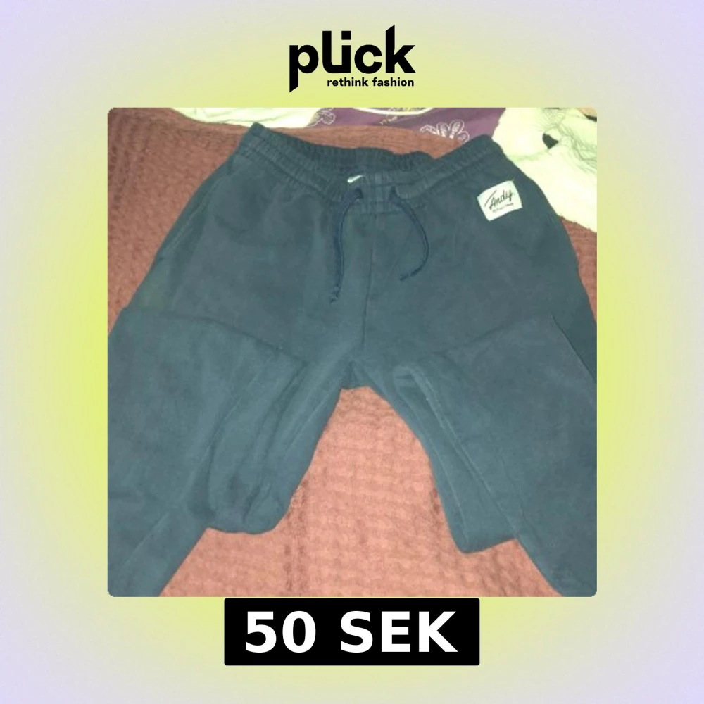 Mörkblå mjukisbyxor från Andy by Frank Dandy i storlek S. Byxorna har resår i midjan med snörning och en mjuk, skön bomullskänsla. Perfekta för chill eller träning. Diskret logga på höften och klassisk loose passform.