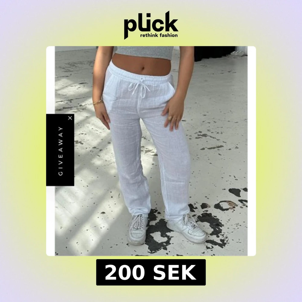 Vita linnebyxor från design by si. Strl S, extra långa. LÅNADE BILDER, skickar självklart egna vid intresse! Har gått alldeles för lång tid utan att stryka de, därför lägger jag ut med lånade bilder :)