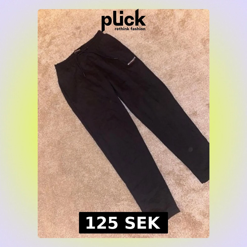 Svarta mjukisbyxor från McKenzie med snörning i midjan och ribbade muddar vid bensluten. Byxorna har en enkel, clean look med logga tryckt på ena benet. Perfekta för chill eller träning. Materialet är mjukt och bekvämt, troligtvis bomull eller polyester.