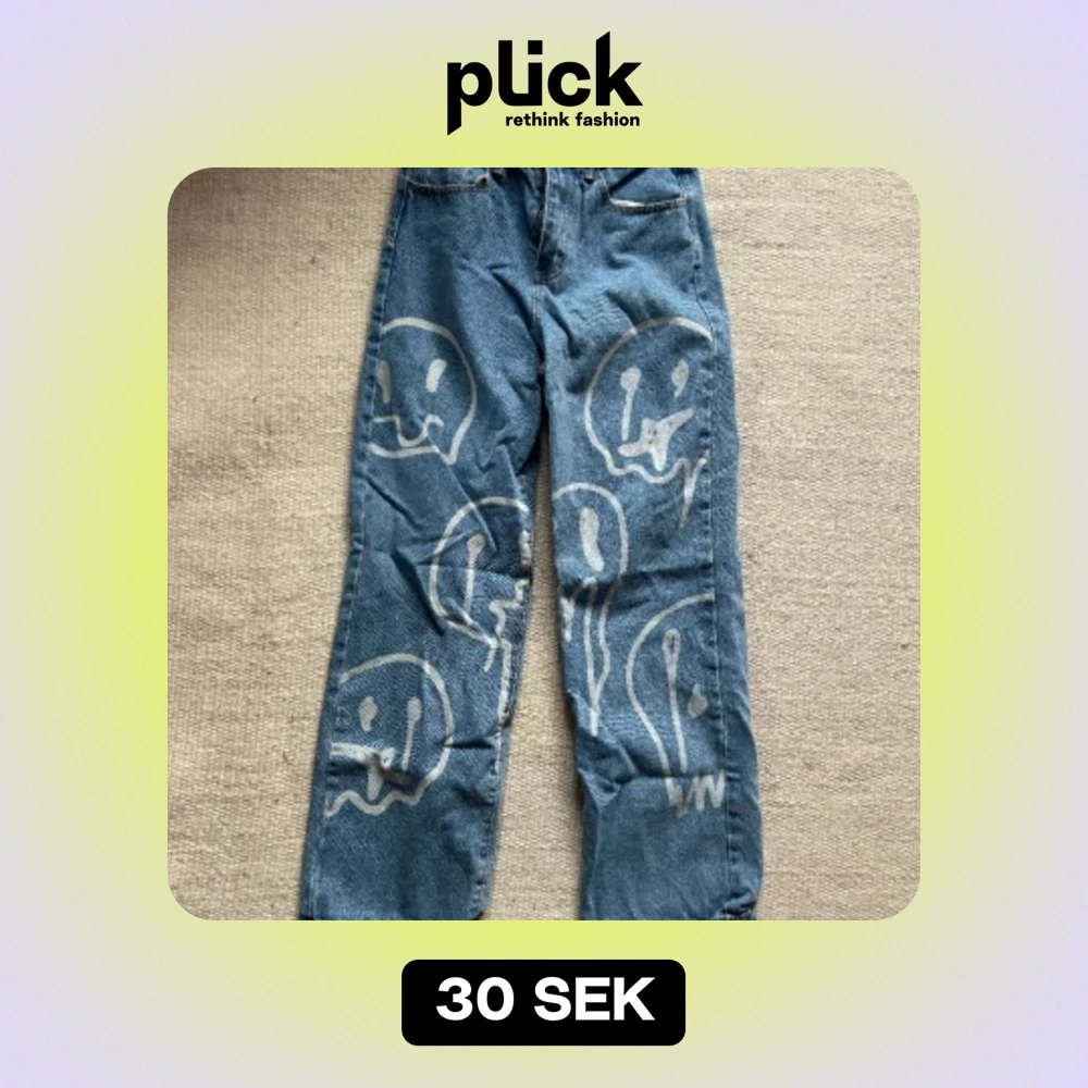 Jeans med tryck från SHEIN. Använd endast ett fåtal gånger så i bra skick. De är i strl S