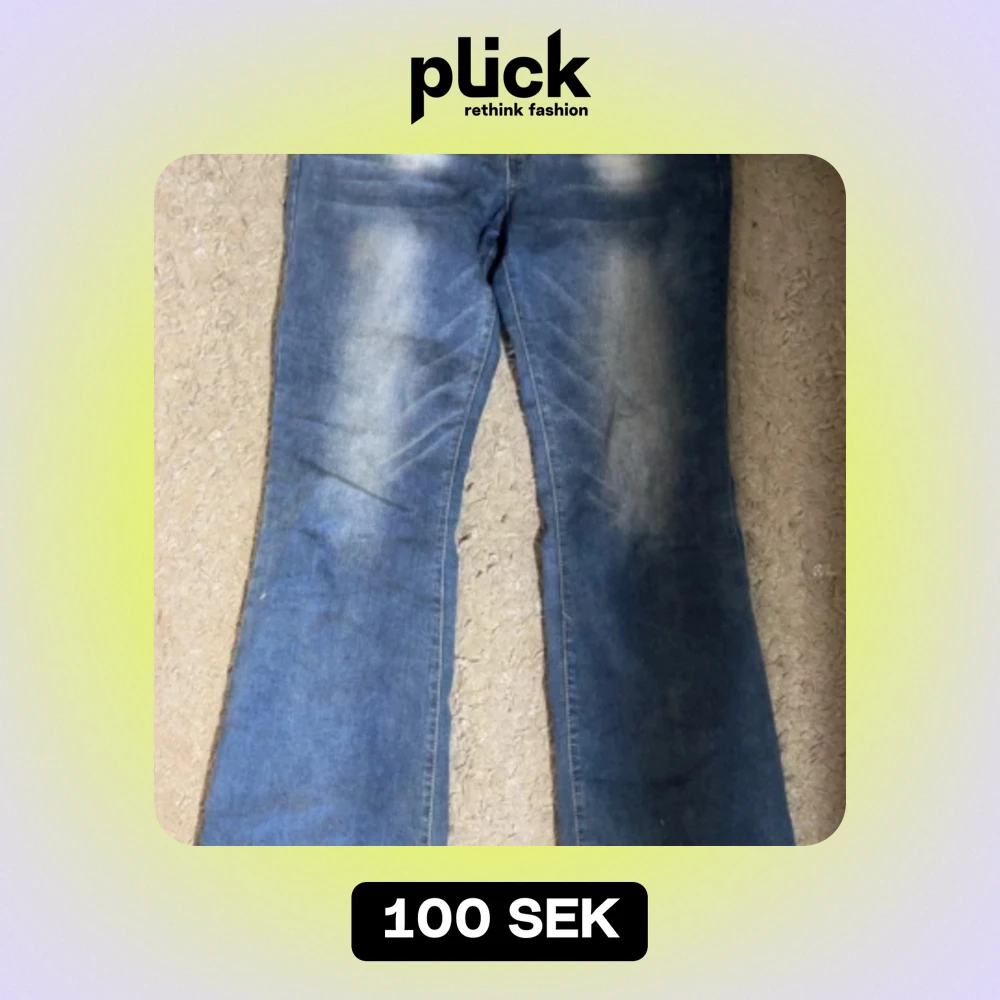 Säljer ett par blå bootcut jeans i storlek S. De är tillverkade av 67% bomull, 31% polyester och 1% spandex, vilket gör dem både bekväma och stretchiga. Perfekta för en avslappnad look!