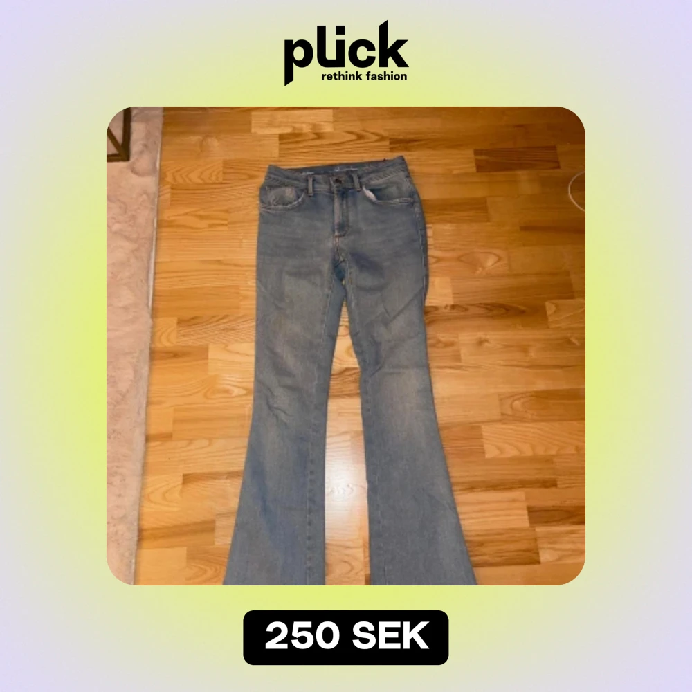 Super snygga jeans från Never denim knappt använda och i väldigt fint skick. Lite ljusare blå i färgen med en snygg bootcut så inga slim fit jeans. Storlek S med stretch! Original 600 kr säljes för 250