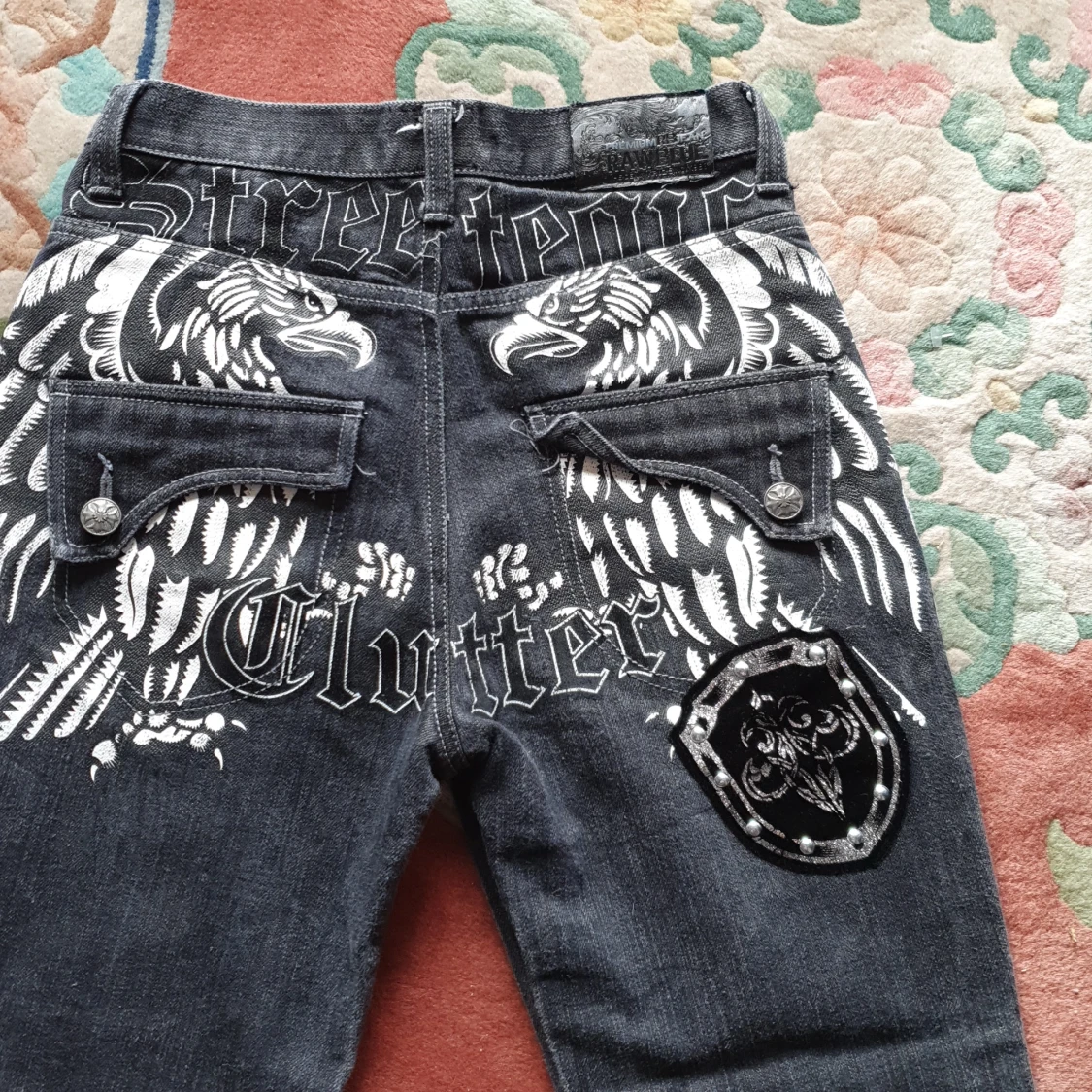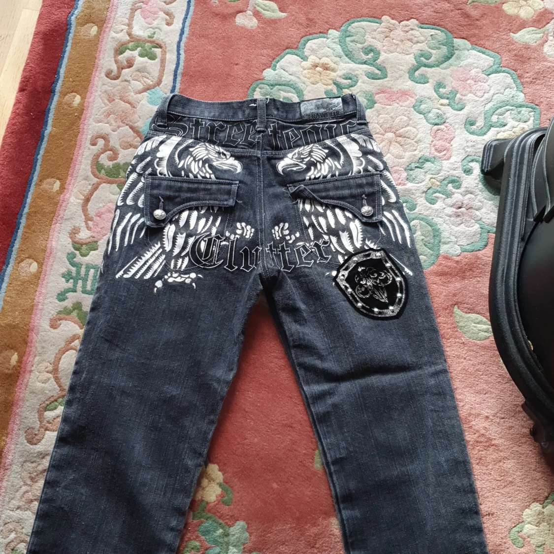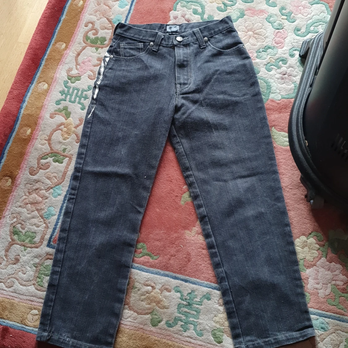 En fin jeans med tryck på och passar till båda kön. Jeans kan användas som half jeans.midjä 72cm och inebens70cm