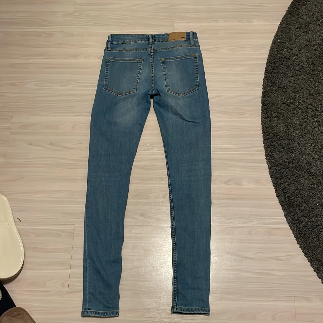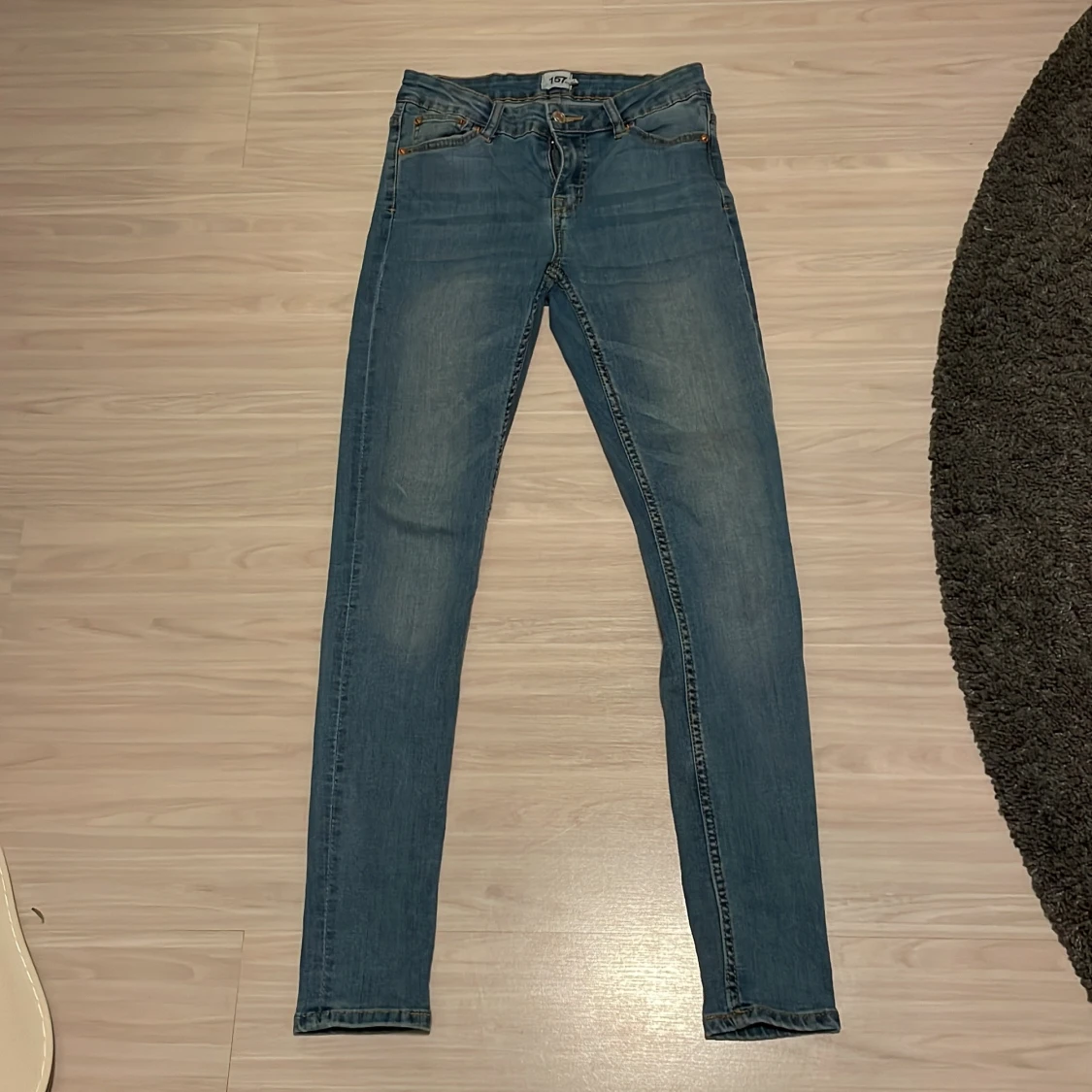 Snygga blå skinny jeans med klassisk femficksdesign och dragkedja. Perfekta för en stilren look. Passar till både sneakers och boots.