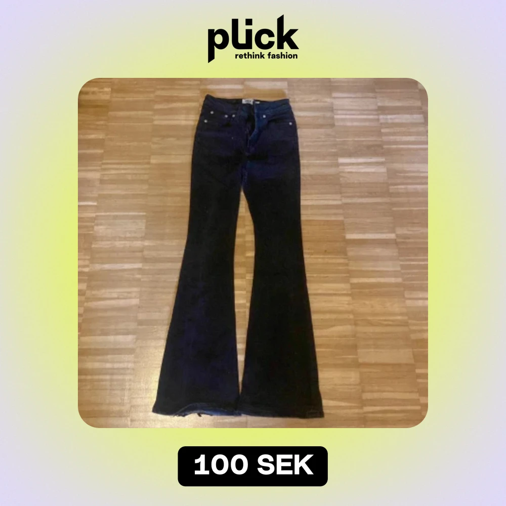 Säljer ett par svarta Snake Flare jeans från 157. De har en snygg flare-stil som ger en retro vibe.