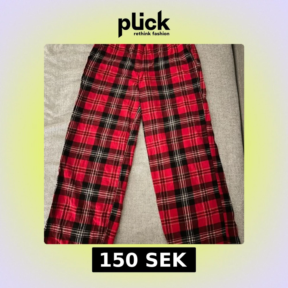 Röda rutiga byxor - Säljer ett par mysiga röda byxor med klassiskt rutigt mönster. Perfekta för en avslappnad dag hemma. Byxorna har en bekväm passform och elastisk midja.