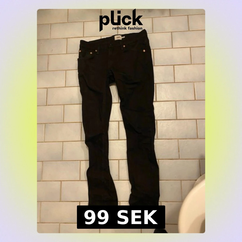 Säljer ett par svarta jeansbyxor från 157 Rocket. De har smal passform och raka ben. Byxorna är tillverkade i ett mjukt bomullsmaterial med lite stretch för extra komfort. Perfekta till sneakers eller boots.