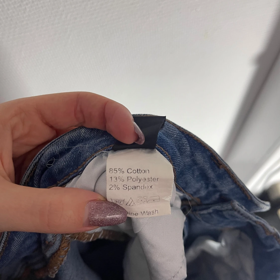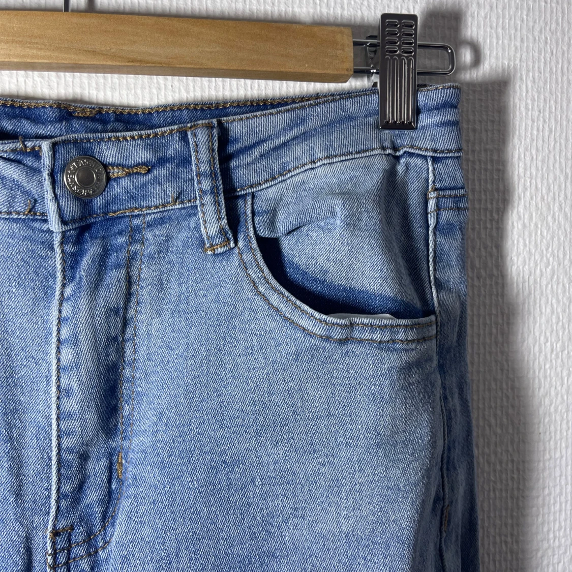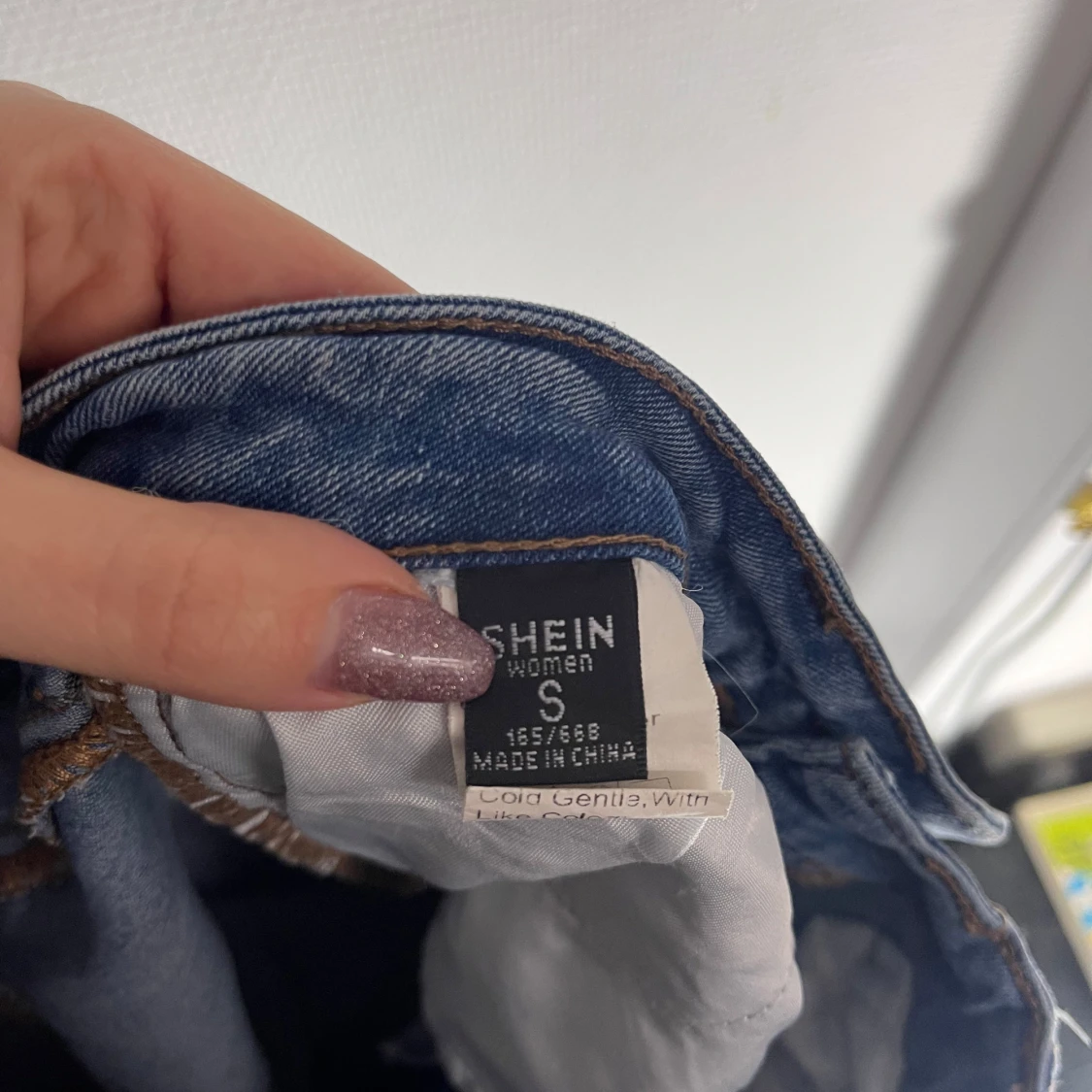 Snygga blå bootcut jeans från Shein i storlek S. Dessa jeans har en klassisk femficksdesign och en knappgylf. Perfekta för en trendig look med sin utsvängda stil.