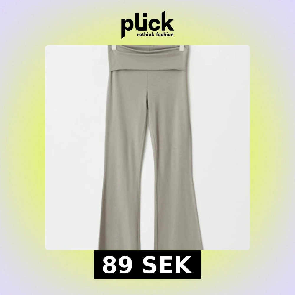 Supersköna grå/gröna mjukisbyxor. Byxorna har en bred linning som kan vikas ner och är gjorda i ett mjukt, stretchigt material. Perfekta för en chill och avslappnad stil.