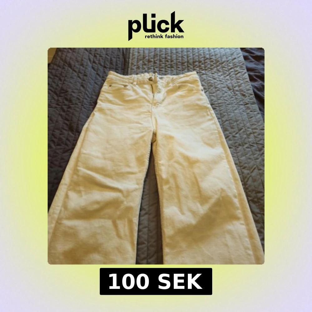 Säljer ett par vita jeans från 157 i modellen Lane. Byxorna har raka ben, klassiska femficksdetaljer och rå, fransig kant nedtill för en cool look. Tillverkade i bomull och passar perfekt till sneakers eller boots.