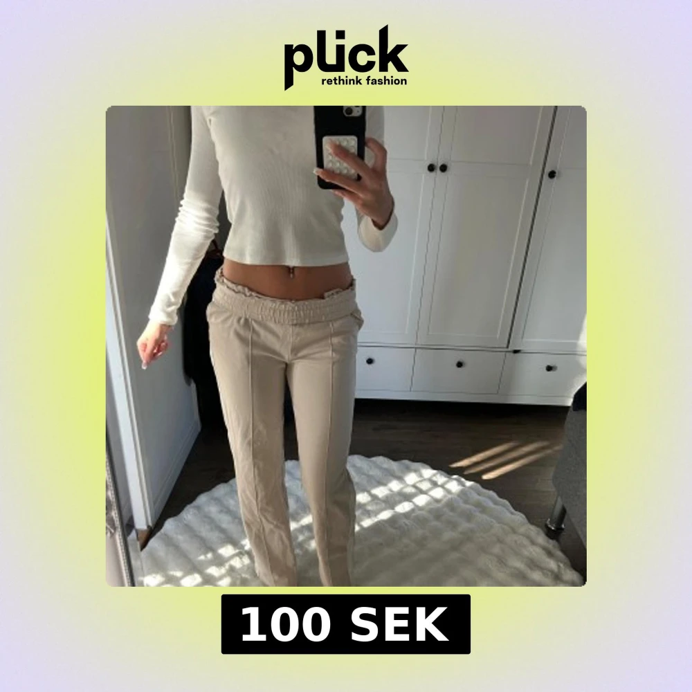 Snygga beiga byxor med rak passform och resår i midjan som ger en chill vibe. Byxorna har pressveck framtill och är tillverkade i ett mjukt material som känns skönt mot huden. Perfekta för dig som gillar en enkel men stilren look.