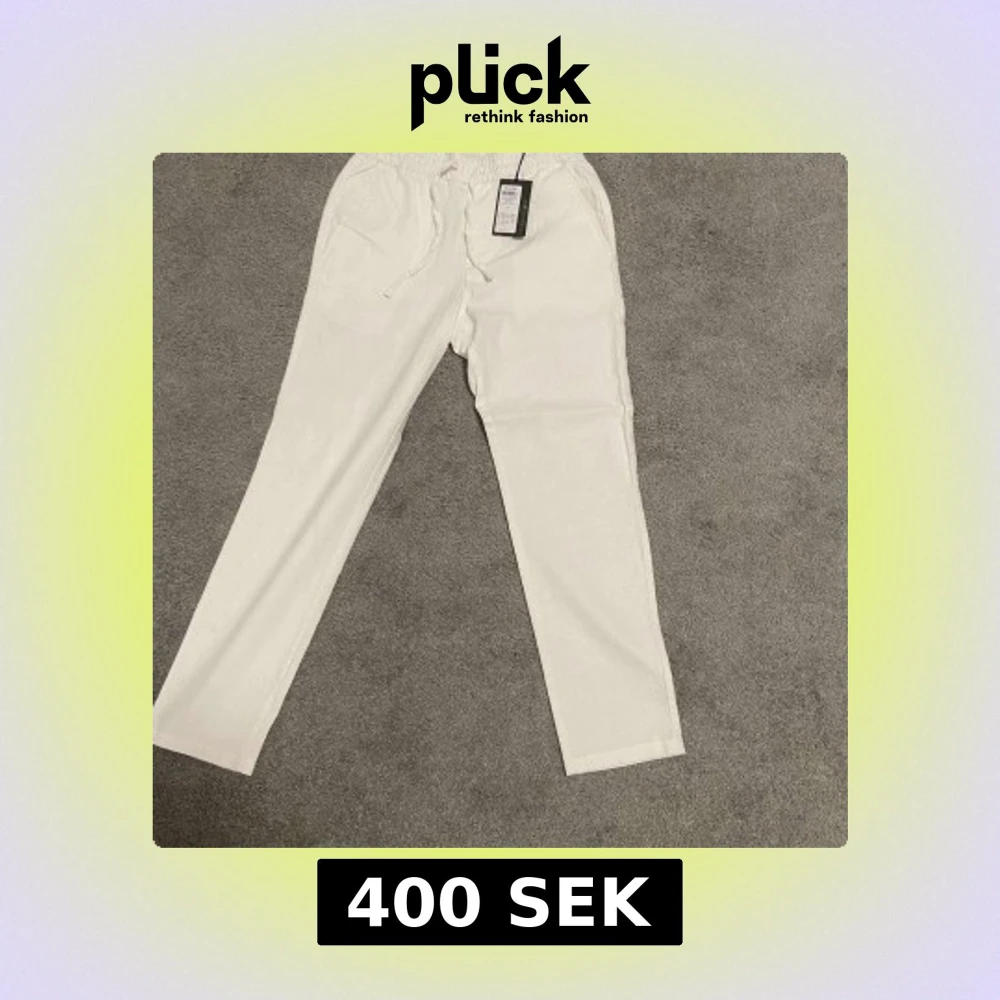 Snygga vita linnebyxor med elastisk midja och snörning framtill. Byxorna har raka ben och sidfickor, perfekta för en chill och stilren look. Lätta och luftiga, passar grymt till sommaren.
