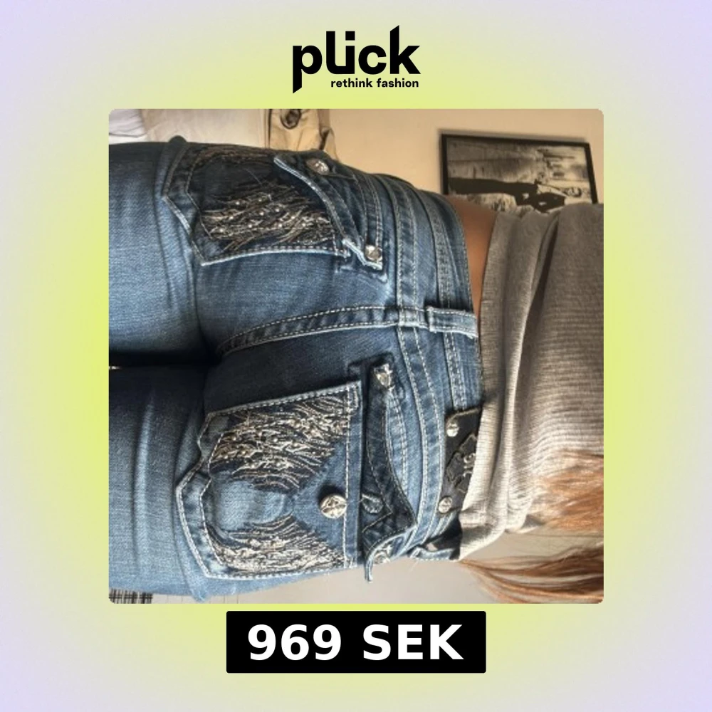 Miss me jeans med vingar på fickorna. W27, sitter bra i längden för mig (är 169)💕 sömmen längs ned på byxan är uppsprätt för att de ska bli längre💕 #missme #sommar