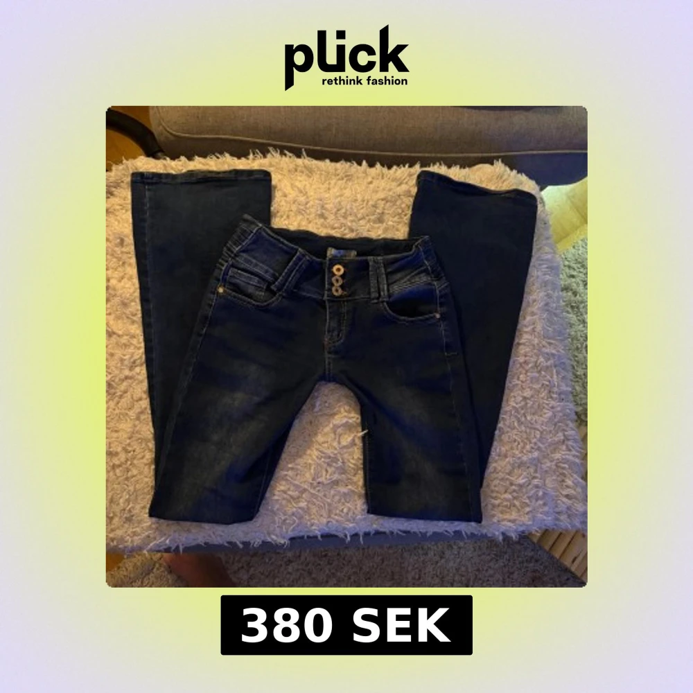 Mörkblå lågmidjade/utsvängda jeans med tre knappar