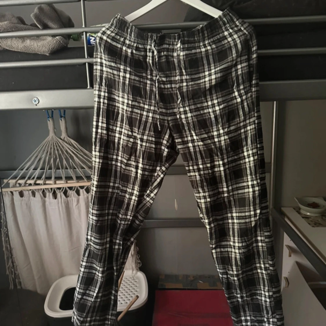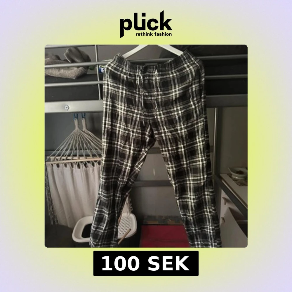 Svarta och vita rutiga mjukisbyxor med elastisk midja och snörning. Sköna och avslappnade, perfekta för chill dagar hemma. Tillverkade i mjukt material som känns bekvämt mot huden.