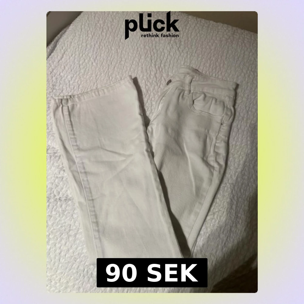 Snygga vita lågmidjade utsvängda jeans från SHEIN i storlek S!