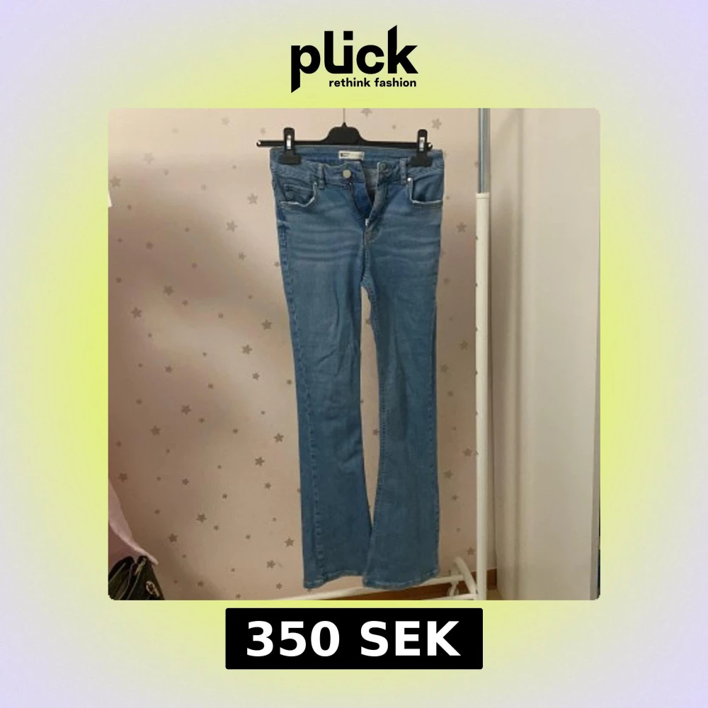 Blåa lågmidjade bootcut jeans. I storlek s men passar för både 32 och 34.