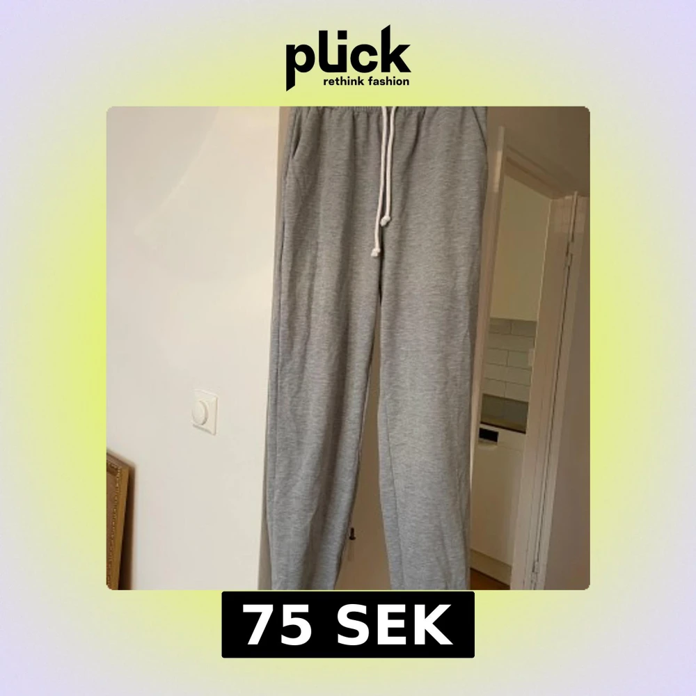 Snygga grå mjukisbyxor med vit snörning i midjan och elastisk resår. På rumpan finns texten angel i strass.